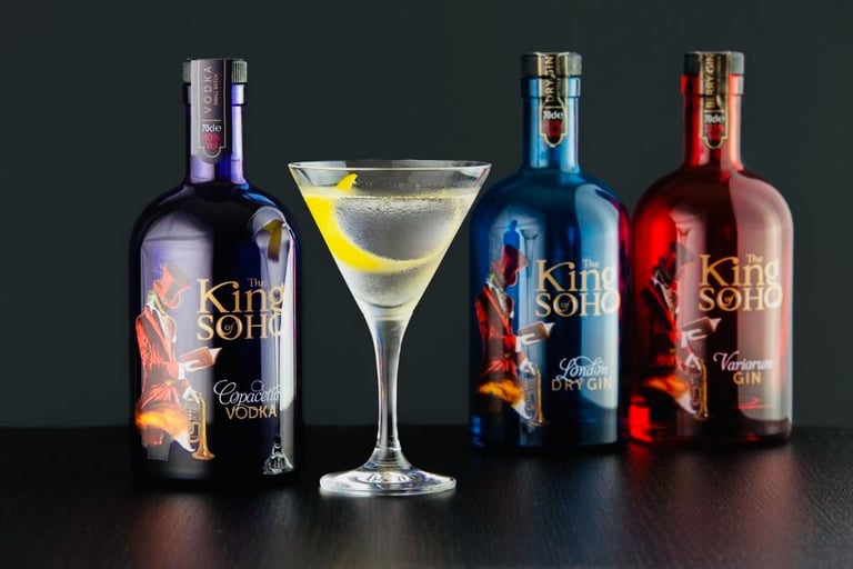 A Legacy of Sophistication & Rebellion Inspired by the vibrant energy of Soho, The King of Soho crafts exceptional spirits for those who live boldly and unapologetically. GIN & VODKA Our London Dry Gin, infused with 12 botanicals, offers a refined, balanced, and aromatic character. Our ultra-smooth vodka, distilled from the finest English wheat, delivers purity and elegance in every sip. Whether enjoyed neat or mixed into a classic cocktail, The King of Soho spirits elevate every occasion. Experience the spirit of Soho. Drink with distinction.